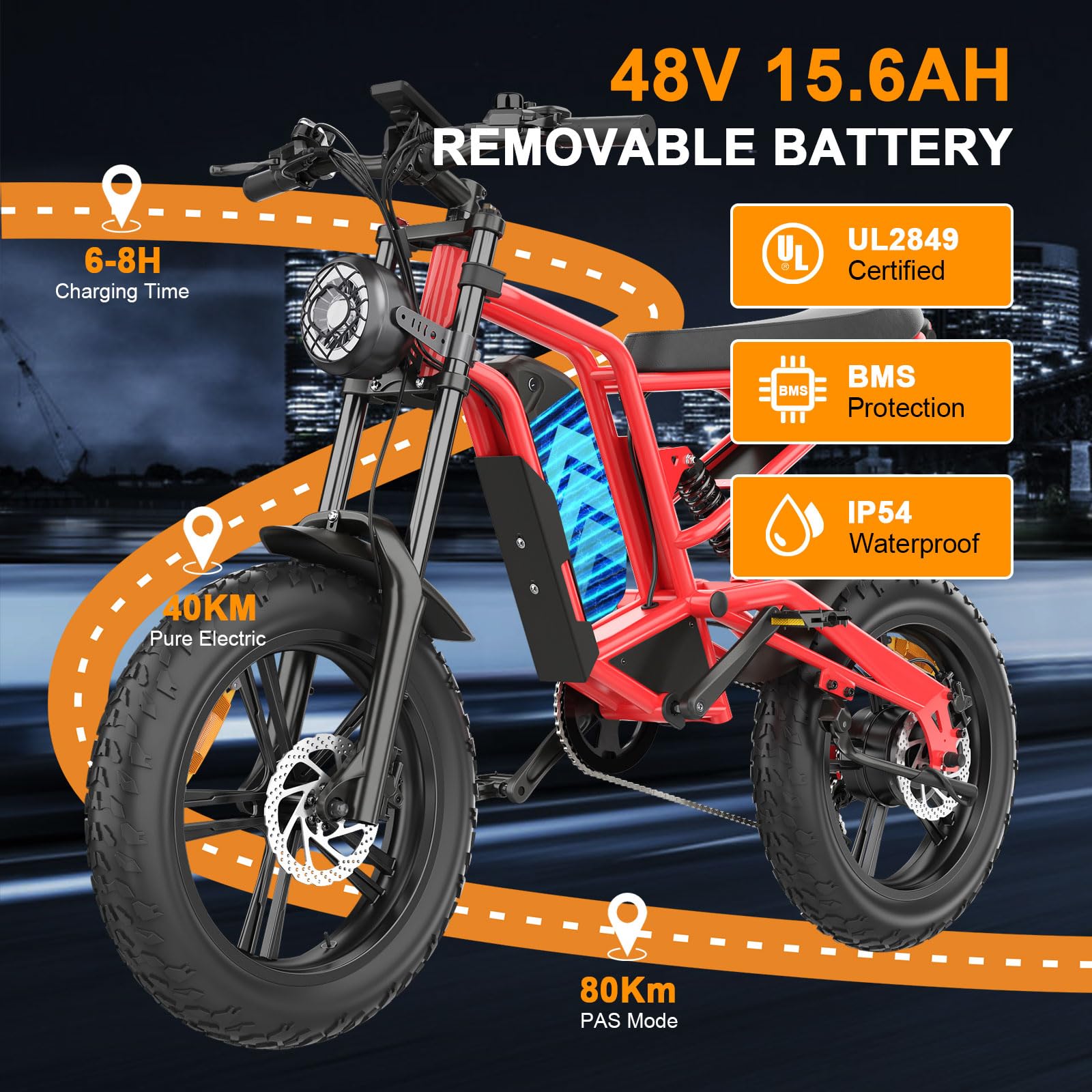 - ๐๐๐ ๐๐๐๐/๐๐๐๐๐ก ๐๐๐ฆ๐จ๐ฏ๐๐๐ฅ๐ ๐๐๐ญ๐ญ๐๐ซ๐ฒ & ๐๐+๐๐ข๐ฅ๐๐ฌ ๐๐จ๐ง๐ ๐๐๐ง๐ ๐ - 48V 15Ah removable battery can travel 28-34 miles per charge in pure e-bike mode and 34-50+ miles in assisted bike mode. Long battery life takes you farther.Ride it and enjoy your leisure time instantly.
