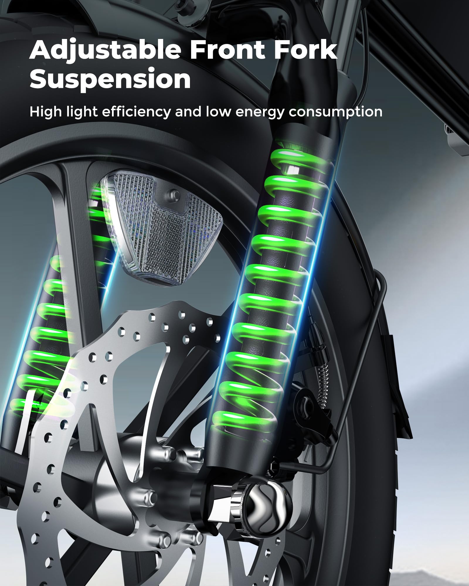 - ๐ฒใ๐๐จ๐ฆ๐๐จ๐ซ๐ญ & ๐๐ญ๐๐๐ข๐ฅ๐ข๐ญ๐ฒ ๐ ๐๐๐ญ๐ฎ๐ซ๐๐ฌใThis electric bike features ๐๐ ๐ฑ ๐.๐๐-๐ข๐ง๐๐ก anti-slip air-filled tires for a stable and comfortable ride. It is equipped with front and rear ๐๐๐ง๐๐๐ซ to keep you clean, a ๐๐ซ๐จ๐ง๐ญ ๐ฌ๐ฎ๐ฌ๐ฉ๐๐ง๐ฌ๐ข๐จ๐ง ๐๐จ๐ซ๐ค for smooth handling, and a rear rack with a soft padded seat for added comfort.
