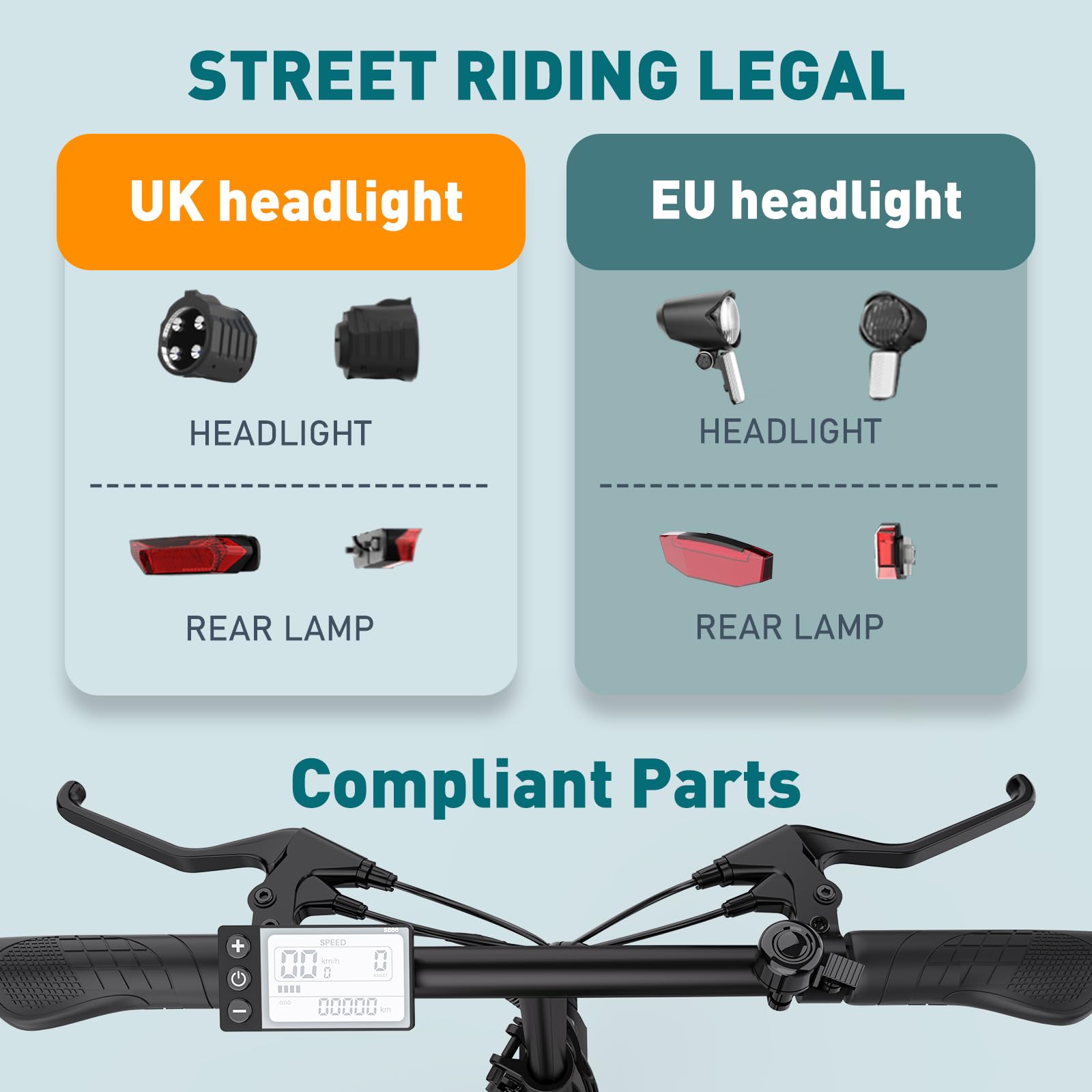 - Note: The electric bike you receive is a fully highway compliant e-bicycles without throttle. Due to product updates, the appearance of some accessories may change, but this does not affect normal riding, you can contact us with any questions.