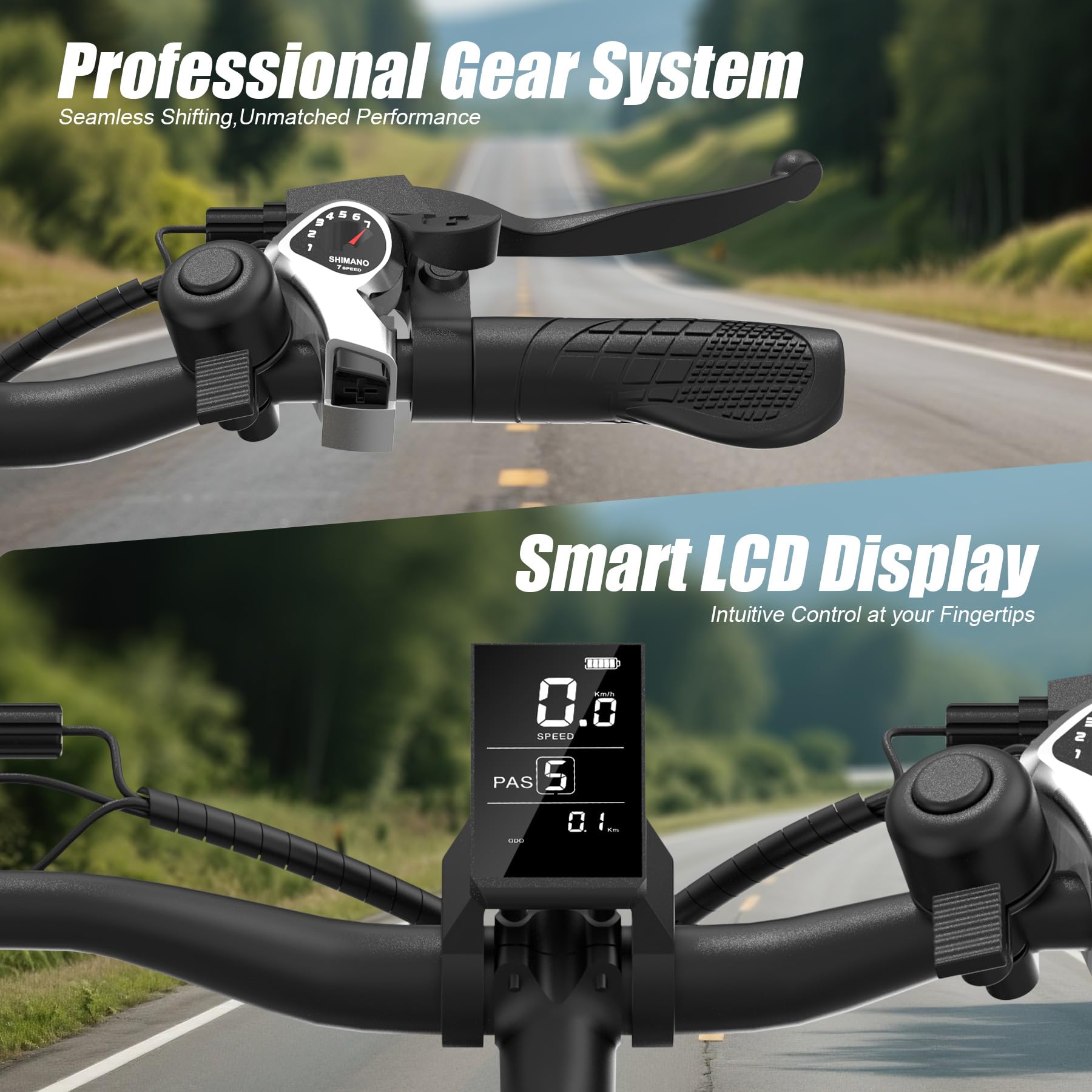 - ๐ ๐๐๐ ๐๐๐ ๐๐ข๐ฌ๐ฉ๐ฅ๐๐ฒ & ๐-๐๐ฉ๐๐๐ ๐๐๐๐ซ ๏ผStay in control with the central ๐๐๐ ๐๐ข๐ฌ๐ฉ๐ฅ๐๐ฒ, monitoring speed, battery, and assist mode on this electric bike for adults.Coupled with a professional ๐-๐ฌ๐ฉ๐๐๐ gear system, this e-bike allows for smooth and precise gear changes to efficiently adapt to changing inclines and maximise your riding efficiency
