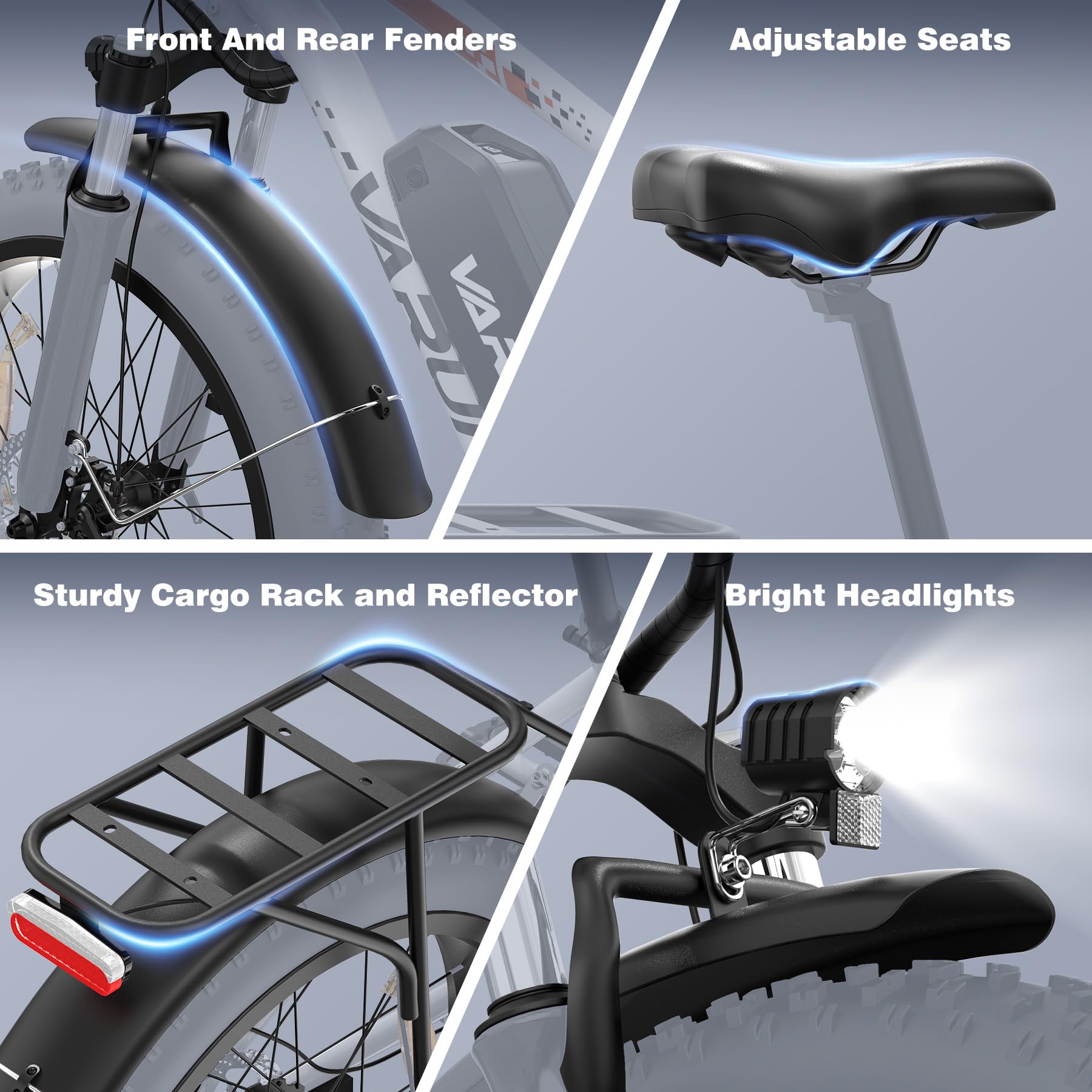 - ๐๐ง๐ก๐๐ง๐๐๐ ๐๐๐๐๐ญ๐ฒ ๐๐ง๐ ๐๐จ๐ฆ๐๐จ๐ซ๐ญ : Varun electric bicycle is equipped with a bright LED headlight and an integrated taillight with ๐๐ซ๐๐ค๐ ๐ฌ๐ข๐ ๐ง๐๐ฅ function, which automatically illuminates when braking to alert vehicles behind. This e-bike for men and women features a ๐ซ๐ฎ๐ฌ๐ญ-๐ซ๐๐ฌ๐ข๐ฌ๐ญ๐๐ง๐ญ ๐๐ก๐๐ข๐ง that ensures durability in all typical UK weather conditions. Built for a smooth, reliable, and comfortable ride, this e bikes requires minimal assembly and is ideal for commutes or leisure cycling