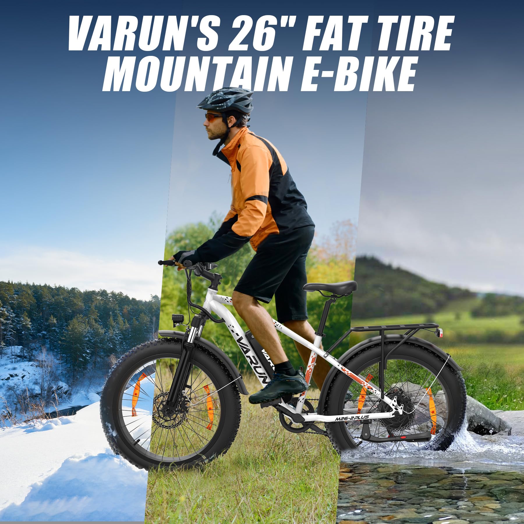 VARUN Electric Bike, 26" 4.0 Fat Tire Mountain Ebike with 48V 15Ah 720 Wh Li-Ion Battery, Up to 75 Miles, 250W 80Nm Motor, LCD Display with 5 PAS, Rear Rack, MTB for Adult Man and Woman